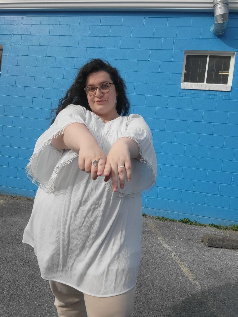 Next, I was channeling my idol, Freddie Mercury. I layered a white dress over cream pants to emmulate Freddie’s iconic angel outfit. I can’t believe this look actually worked. I’m not sure when I would feel the need to wear this look again, but I look back at the moment in awe of my own audacity.
